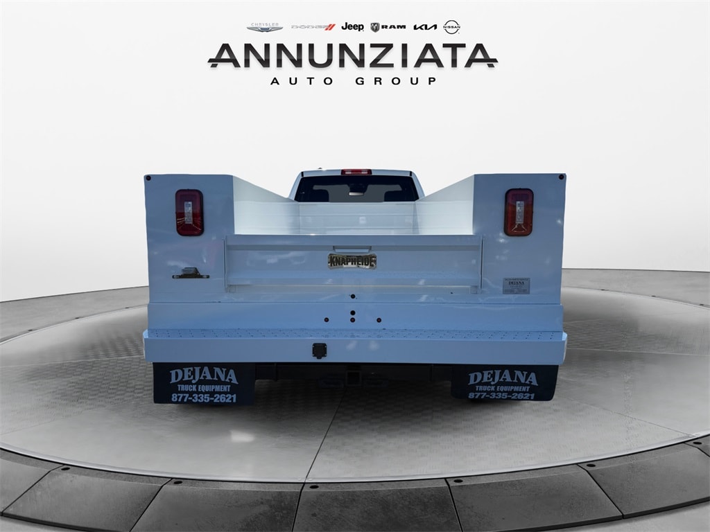 Chrome Appearance Group (Bright Front Bumper, Center Hub, Chrome Grille Surround, Matte Black Mesh Grille w/Chrome, and Wheels: 18" x 8.0" Polished Aluminum), Quick Order Package 2XA Tradesman, Tradesman Level 1 Equipment Group (Black Exterior Mirrors, Black Power Heated Fold Telescope Mirrors, Exterior Mirrors Courtesy Lamps, Exterior Mirrors w/Heating Element, Exterior Mirrors w/Supplemental Signals, Front 1-Touch Down Power Windows, Manual Folding Exterior Mirrors, Manual Telescoping Mirrors, Mirror Running Lights, Power Adjust Mirrors, Power-Adjustable Convex Aux Mirrors, Rear Window Defroster, Remote Keyless Entry, Speed Sensitive Power Locks, Trailer Brake Control, Trailer Light Check, and Upgraded Door Trim Panel), 11.50" Dual Wheels Rear Axle, 4 Speakers, 4-Wheel Disc Brakes, 4.10 Axle Ratio, 40/20/40 Split Bench Seat, 4G LTE Wi-Fi Hot Spot, 6000# Front Axle w/Hub Ext, ABS brakes, Air Conditioning, AM/FM radio: SiriusXM, Apple CarPlay, Apple CarPlay/Android Auto, Black Wheel Center Hub, Cargo & CHMSL Lamp, Compass, Connectivity - US/Canada, Delay-off headlights, Driver door bin, Dual front impact airbags, Dual Rear Wheels, Electronic Stability Control, Emergency communication system: RAM Connect, For Details, Visit DriveUconnect.com, Front anti-roll bar, Front Armrest w/Cupholders, Front Center Armrest w/Storage, Front fog lights, Front License Plate Bracket, Front reading lights, Fully automatic headlights, Global Telematics Box Module (TBM), Google Android Auto, GPS Antenna Input, HD Vinyl 40/20/40 Split Bench Seat, Integrated Voice Command w/Bluetooth, Manual Adjust 4-Way Driver Seat, Manual Adjust 4-Way Front Passenger Seat, Manufacturer's Statement of Origin, Occupant sensing airbag, Outside temperature display, Overhead console, ParkView Rear Back-Up Camera, Passenger door bin, Passenger vanity mirror, Power steering, Radio data system, Radio: Uconnect 5 w/8.4" Display, Rear anti-roll bar, Rear Backup Alarm, Remote USB Port - Charge Only, Speed control, Storage Tray, Tachometer, Temperature & Compass Gauge, Tilt steering wheel, Traction control, Variably intermittent wipers, Voltmeter, Wheels: 17" x 6.0" Polished Aluminum, and Wheels: 18" x 8.0" Steel PainteD.