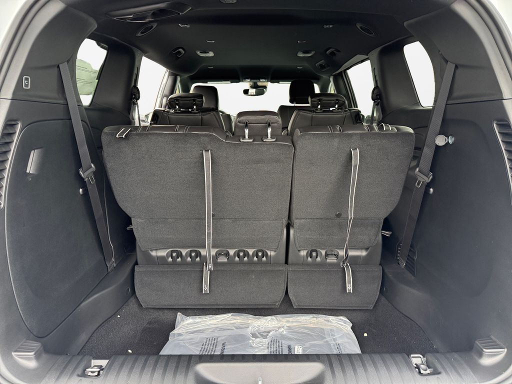 Quick Order Package 27L, 10.1" Touchscreen Display, 18" x 7.5" Painted Aluminum Wheels, 3.73 Axle Ratio, 3rd row seats: split-bench, 4-Wheel Disc Brakes, 4G LTE Wi-Fi Hot Spot, 6 Speakers, ABS brakes, Air Conditioning, Alloy wheels, AM/FM radio: SiriusXM, Apple CarPlay, Apple CarPlay/Android Auto, Auto-dimming Rear-View mirror, Automatic temperature control, AWD Suspension, Black Seats, Brake assist, Bumpers: body-color, Caprice Leatherette Bucket Seats, Compass, Connectivity - US/Canada, Delay-off headlights, Disassociated Touchscreen Display, Driver door bin, Driver vanity mirror, Driver's Seat Mounted Armrest, Dual front impact airbags, Dual front side impact airbags, Electronic Stability Control, Emergency communication system: Chrysler Connect, For Details, Visit DriveUconnect.com, Four wheel independent suspension, Front anti-roll bar, Front Bucket Seats, Front dual zone A/C, Front fog lights, Front reading lights, Fully automatic headlights, Garage door transmitter, Google Android Auto, GPS Antenna Input, Heated door mirrors, Heated front seats, Heated steering wheel, Illuminated entry, Integrated Active Noise Cancellation, Integrated Center Stack Radio, Knee airbag, Low tire pressure warning, Memory seat, MyFlexCare Service Plan, Occupant sensing airbag, Outside temperature display, Overhead airbag, Overhead console, Panic alarm, ParkView Rear Back-Up Camera, Passenger door bin, Passenger seat mounted armrest, Passenger vanity mirror, Power door mirrors, Power driver seat, Power Liftgate, Power steering, Power windows, Radio data system, Radio: Uconnect 5 with 10.1" Display, Rain sensing wipers, Rear air conditioning, Rear reading lights, Rear window defroster, Rear window wiper, Reclining 3rd row seat, Remote keyless entry, Security system, Speed control, Split folding rear seat, Spoiler, Steering wheel mounted audio controls, Tachometer, Telescoping steering wheel, Tilt steering wheel, Traction control, Trip computer, Turn signal indicator mirrors, USB Host Flip, Variably intermittent wipers, and VoltmeteR.