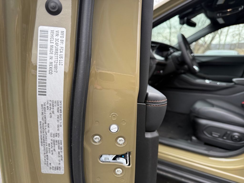 Quick Order Package 23G Limited (Auto-Dimming Rear-View Mirror, Capri Leatherette Perforated Seats, Cognac Interior Stitching, Exterior Mirrors Courtesy Lamps, Exterior Mirrors with Supplemental Signals, Gloss Black Mirrors, Heated Exterior Mirrors, Heated Steering Wheel, Limited Badge, Power 2-Way Passenger Lumbar Adjust, Power Adjust 6-Way Front Passenger Seat, Power Liftgate, Power Multi-Function Foldaway Mirrors, Security Alarm, Universal Garage Door Opener, and Wireless Charging Pad), 1.6L I4, 4-Wheel Disc Brakes, 4.16 Final Drive Ratio, 4G LTE Wi-Fi Hot Spot, 6 Speakers, ABS brakes, Air Conditioning, Alloy wheels, AM/FM radio: SiriusXM with 360L, Apple CarPlay, Apple CarPlay/Android Auto, Auto High-beam Headlights, Automatic temperature control, Brake assist, Compass, Delay-off headlights, Driver door bin, Driver vanity mirror, Dual front impact airbags, Dual front side impact airbags, Electronic Stability Control, Emergency communication system, Four wheel independent suspension, Front anti-roll bar, Front Bucket Seats, Front Center Armrest, Front dual zone A/C, Front fog lights, Front License Plate Bracket, Front reading lights, Fully automatic headlights, Global Telematics Box Module (TBM), Google Android Auto, GPS Antenna Input, Heated door mirrors, Heated front seats, Illuminated entry, Knee airbag, Low tire pressure warning, MyFlexCare Service Plan, Occupant sensing airbag, Outside temperature display, Overhead airbag, Overhead console, Panic alarm, ParkView Rear Back-Up Camera, Passenger door bin, Passenger vanity mirror, Power door mirrors, Power driver seat, Power steering, Power windows, Radio data system, Radio: Uconnect 5 with 12.3" Display, Rain sensing wipers, Rear anti-roll bar, Rear reading lights, Rear seat center armrest, Rear side impact airbag, Rear window defroster, Rear window wiper, Remote keyless entry, SiriusXM with 360L, Soul Cloth Seats with Labyrinth Embossing, Speed control, Speed-sensing steering, Split folding rear seat, Spoiler, Steering wheel mounted audio controls, Tachometer, Telescoping steering wheel, Tilt steering wheel, Traction control, Trip computer, US/Canada Connectivity, Variably intermittent wipers, Voltmeter, and Wheels: 18" x 7" Machine Face Painted Aluminum.