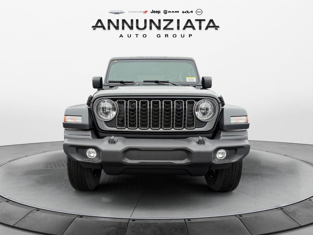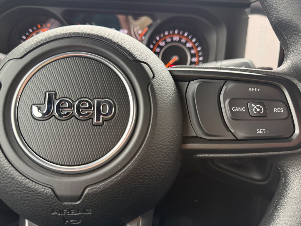 Quick Order Package 23B Sport, 12.3" Touchscreen Display, 3.45 Overall Top Gear Ratio, 4-Wheel Disc Brakes, 4G LTE Wi-Fi Hot Spot, 8 Speakers, ABS brakes, Air Conditioning, AM/FM radio: SiriusXM with 360L, Apple CarPlay, Apple CarPlay/Android Auto, Aux Battery, Brake assist, Cloth Low-Back Bucket Seats, Compass, Connectivity - US/Canada, Delay-off headlights, Driver door bin, Driver vanity mirror, Dual front impact airbags, Dual front side impact airbags, Electronic Stability Control, For More Info, Call 800-643-2112, Front anti-roll bar, Front Bucket Seats, Front Center Armrest w/Storage, Front fog lights, Front reading lights, Google Android Auto, Illuminated entry, Integrated Center Stack Radio, Integrated roll-over protection, Jeep Trail Rated Kit, Low tire pressure warning, MOPAR All-Weather Floor Mats, Myflexcare Service Plan, Non-Lock Fuel Cap Without Discriminator, Normal Duty Suspension, Occupant sensing airbag, Outside temperature display, Overhead airbag, Panic alarm, ParkView Rear Back-Up Camera, Passenger door bin, Passenger vanity mirror, Power steering, Power windows, Radio data system, Radio: Uconnect 5 with 12.3" Display, Rear anti-roll bar, Rear reading lights, Remote keyless entry, SiriusXM Radio Service, SiriusXM with 360L, Speed control, Steering wheel mounted audio controls, Stop-Start Dual Battery System, Tachometer, Telescoping steering wheel, Tilt steering wheel, Traction control, Trip computer, Variably intermittent wipers, and Wheels: 17" x 7.5" Black Steel Styled.