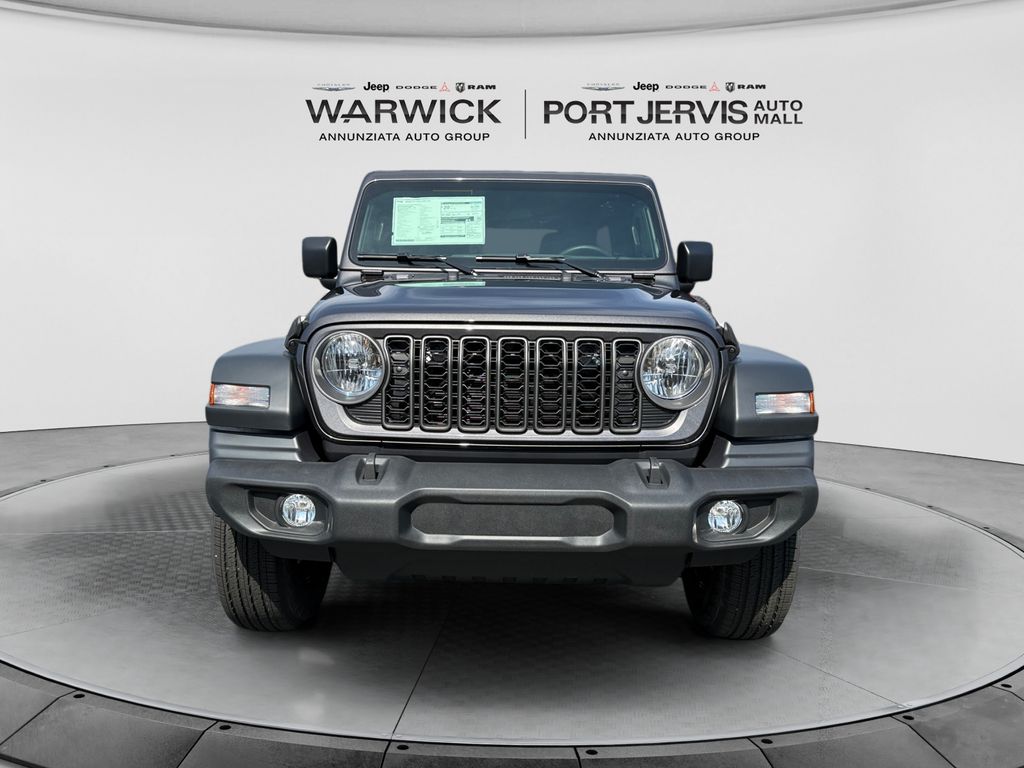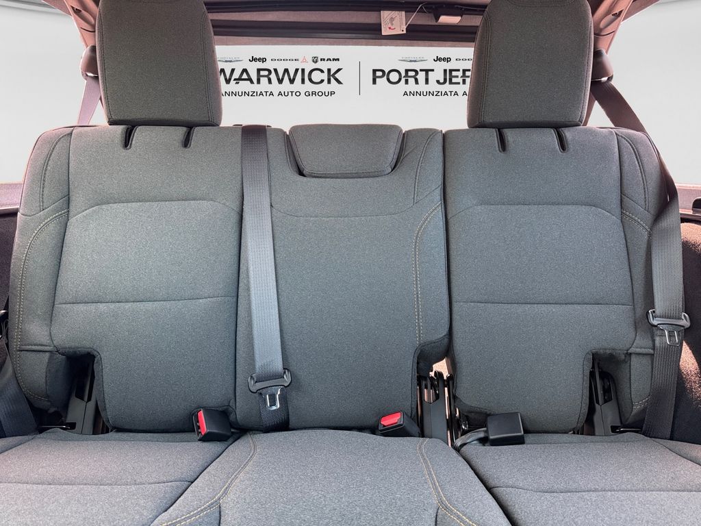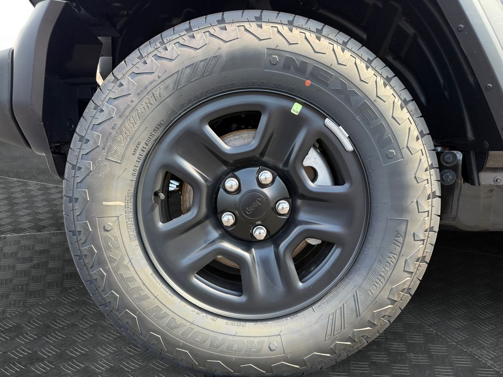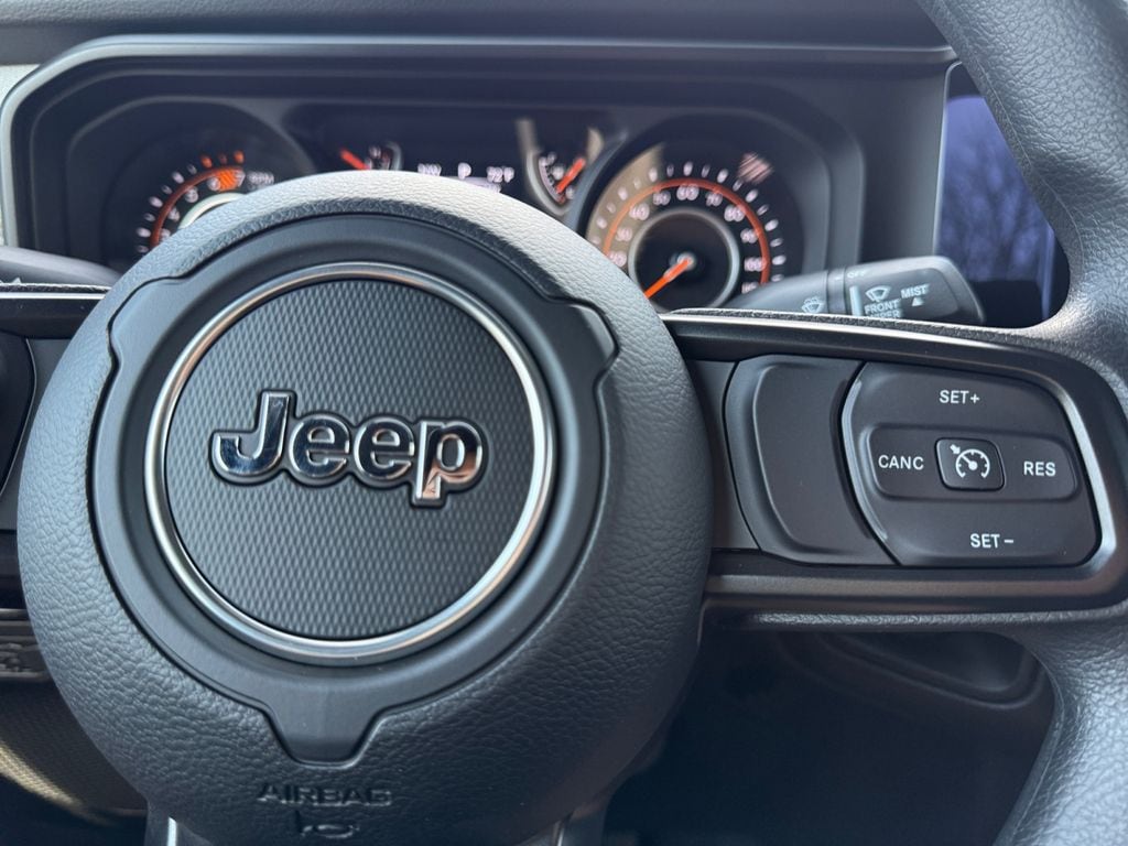 Quick Order Package 24B Sport, 12.3" Touchscreen Display, 3.45 Overall Top Gear Ratio, 4-Wheel Disc Brakes, 4G LTE Wi-Fi Hot Spot, 8 Speakers, ABS brakes, Air Conditioning, AM/FM radio: SiriusXM with 360L, Apple CarPlay, Apple CarPlay/Android Auto, Aux Battery, Brake assist, Compass, Connectivity - US/Canada, Deep Tint Sunscreen Windows, Delay-off headlights, Driver door bin, Driver vanity mirror, Dual front impact airbags, Dual front side impact airbags, Electronic Stability Control, For More Info, Call 800-643-2112, Front anti-roll bar, Front Bucket Seats, Front Center Armrest w/Storage, Front fog lights, Front reading lights, Google Android Auto, Illuminated entry, Integrated Center Stack Radio, Integrated roll-over protection, Jeep Trail Rated Kit, Low tire pressure warning, MOPAR All-Weather Floor Mats, Myflexcare Service Plan, Non-Lock Fuel Cap Without Discriminator, Normal Duty Suspension, Occupant sensing airbag, Outside temperature display, Overhead airbag, Panic alarm, ParkView Rear Back-Up Camera, Passenger door bin, Passenger vanity mirror, Power steering, Power windows, Radio data system, Radio: Uconnect 5 with 12.3" Display, Rear anti-roll bar, Rear reading lights, Remote keyless entry, SiriusXM Radio Service, SiriusXM with 360L, Speed control, Split folding rear seat, Steering wheel mounted audio controls, Stop-Start Dual Battery System, Tachometer, Telescoping steering wheel, Tilt steering wheel, Traction control, Trip computer, Variably intermittent wipers, and Wheels: 17" x 7.5" Black Steel Styled.