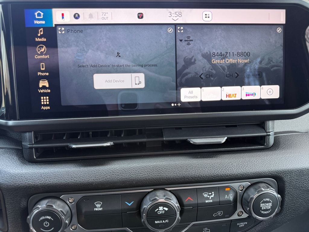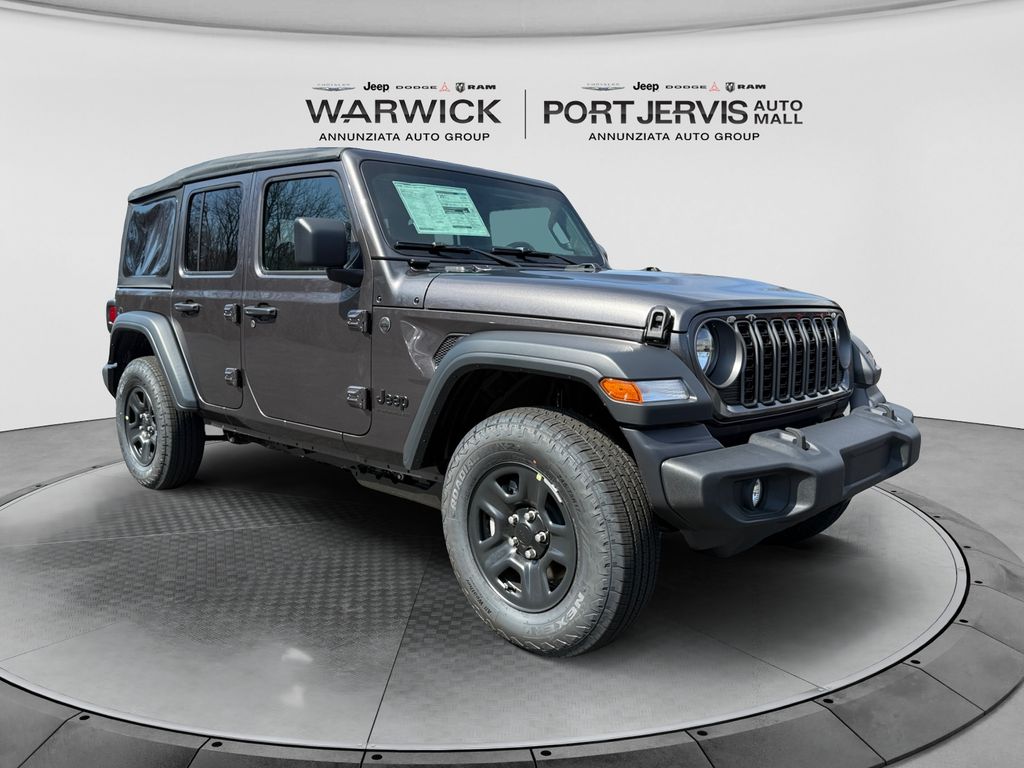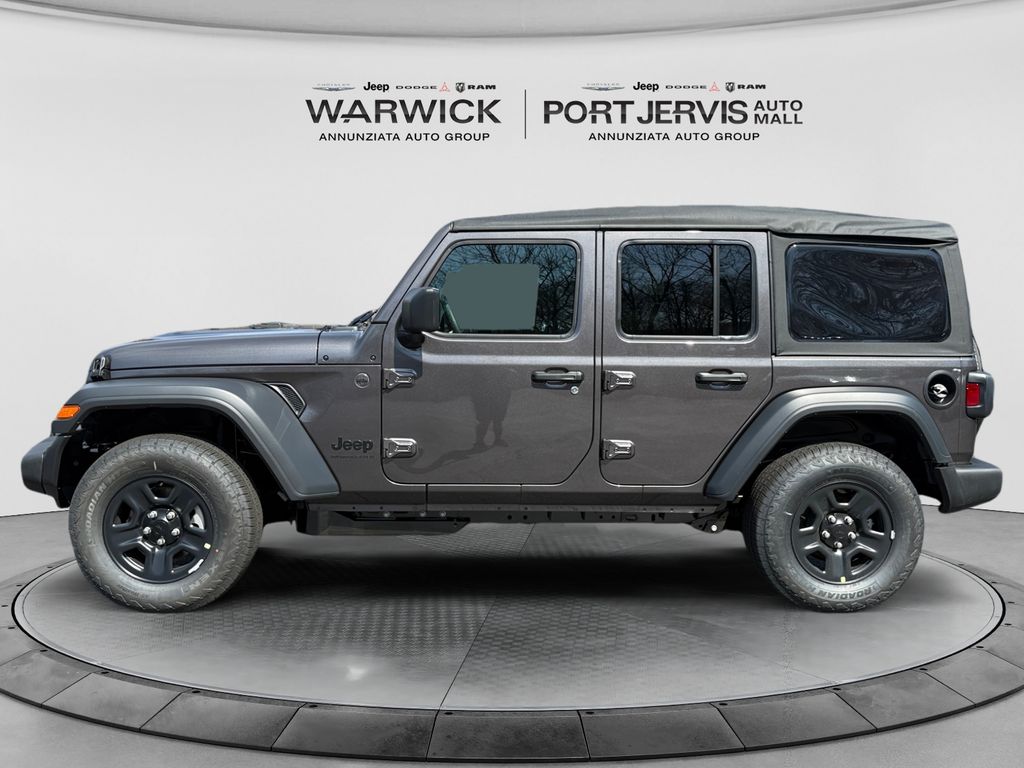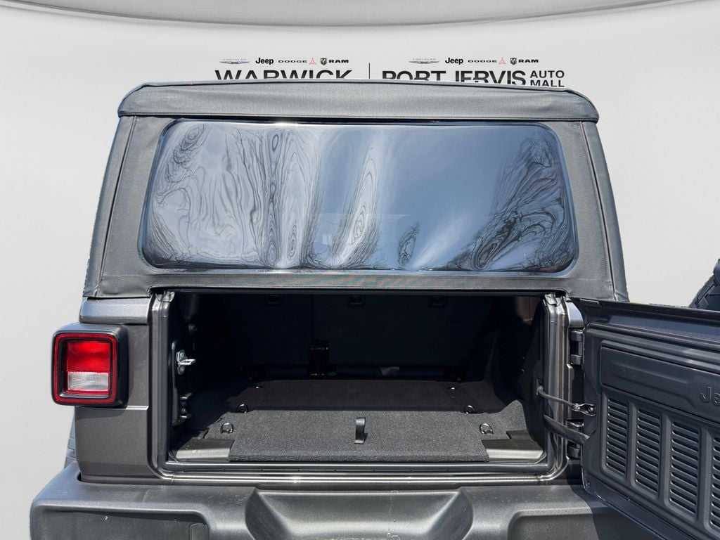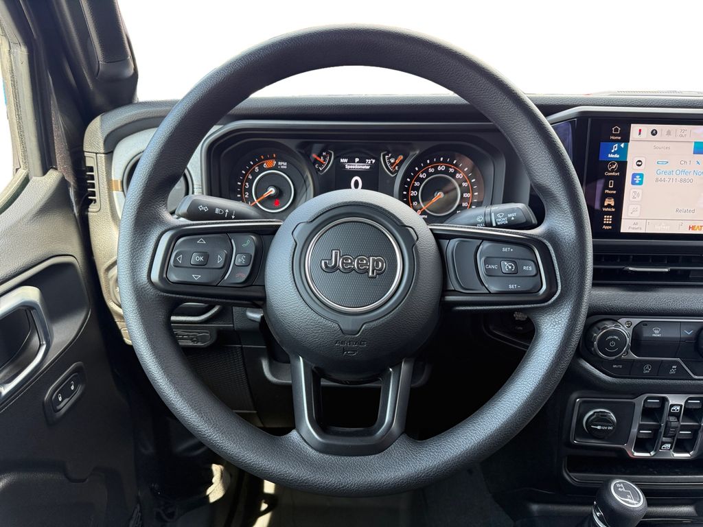 Quick Order Package 24B Sport, 12.3" Touchscreen Display, 3.45 Overall Top Gear Ratio, 4-Wheel Disc Brakes, 4G LTE Wi-Fi Hot Spot, 8 Speakers, ABS brakes, Air Conditioning, AM/FM radio: SiriusXM with 360L, Apple CarPlay, Apple CarPlay/Android Auto, Aux Battery, Brake assist, Compass, Connectivity - US/Canada, Deep Tint Sunscreen Windows, Delay-off headlights, Driver door bin, Driver vanity mirror, Dual front impact airbags, Dual front side impact airbags, Electronic Stability Control, For More Info, Call 800-643-2112, Front anti-roll bar, Front Bucket Seats, Front Center Armrest w/Storage, Front fog lights, Front reading lights, Google Android Auto, Illuminated entry, Integrated Center Stack Radio, Integrated roll-over protection, Jeep Trail Rated Kit, Low tire pressure warning, MOPAR All-Weather Floor Mats, Myflexcare Service Plan, Non-Lock Fuel Cap Without Discriminator, Normal Duty Suspension, Occupant sensing airbag, Outside temperature display, Overhead airbag, Panic alarm, ParkView Rear Back-Up Camera, Passenger door bin, Passenger vanity mirror, Power steering, Power windows, Radio data system, Radio: Uconnect 5 with 12.3" Display, Rear anti-roll bar, Rear reading lights, Remote keyless entry, SiriusXM Radio Service, SiriusXM with 360L, Speed control, Split folding rear seat, Steering wheel mounted audio controls, Stop-Start Dual Battery System, Tachometer, Telescoping steering wheel, Tilt steering wheel, Traction control, Trip computer, Variably intermittent wipers, and Wheels: 17" x 7.5" Black Steel Styled.
