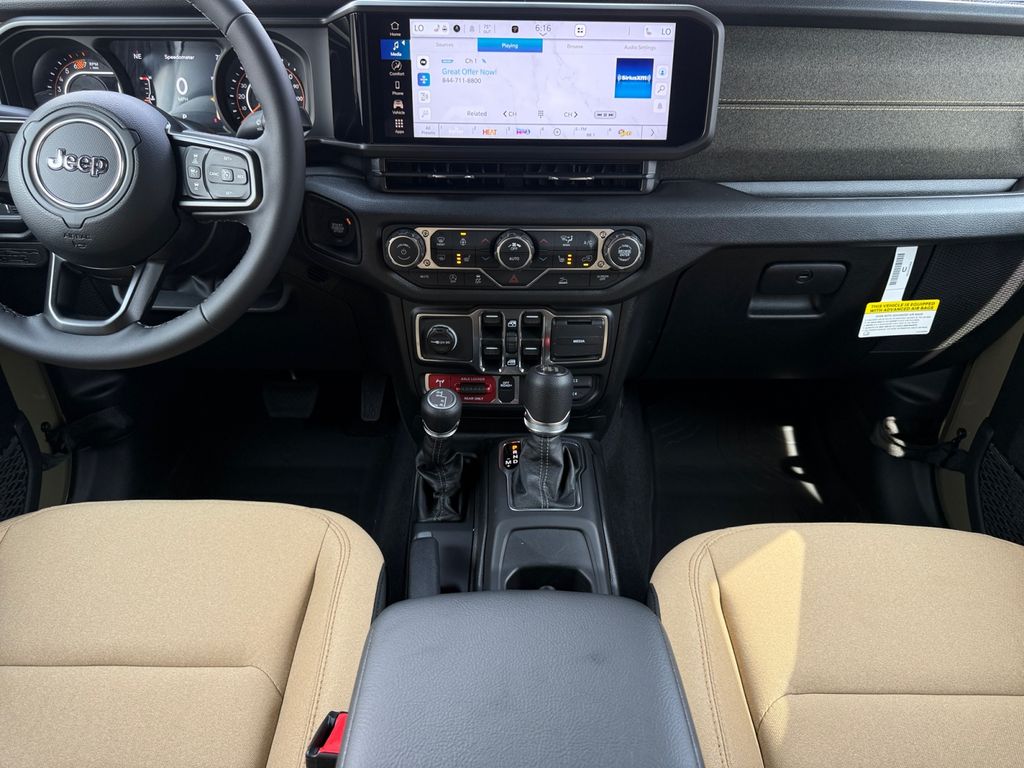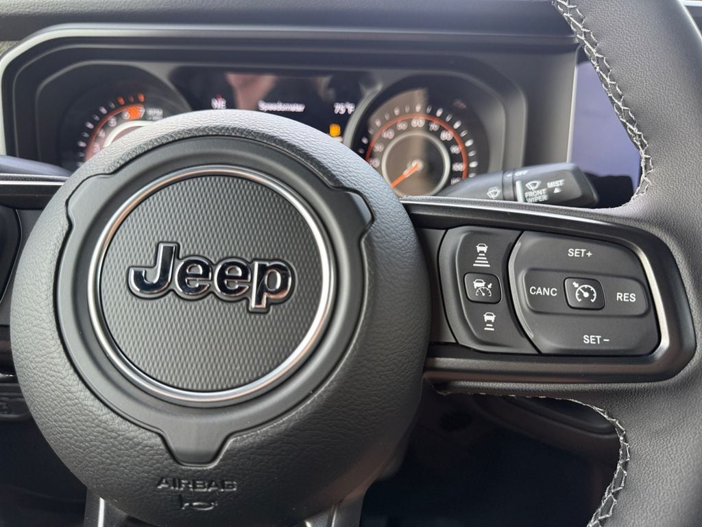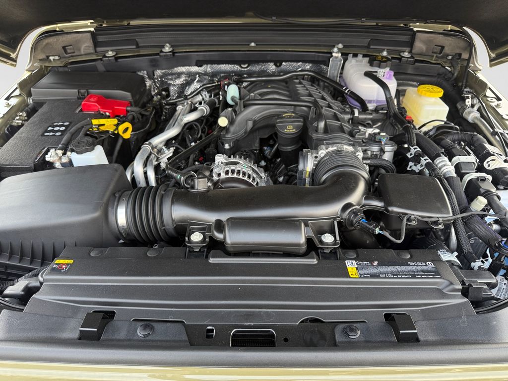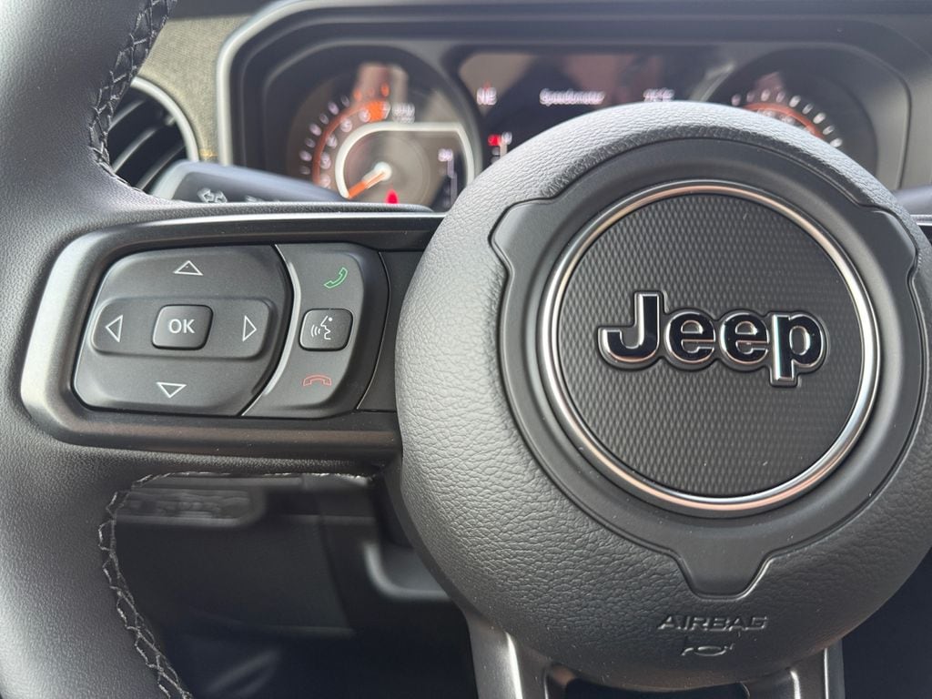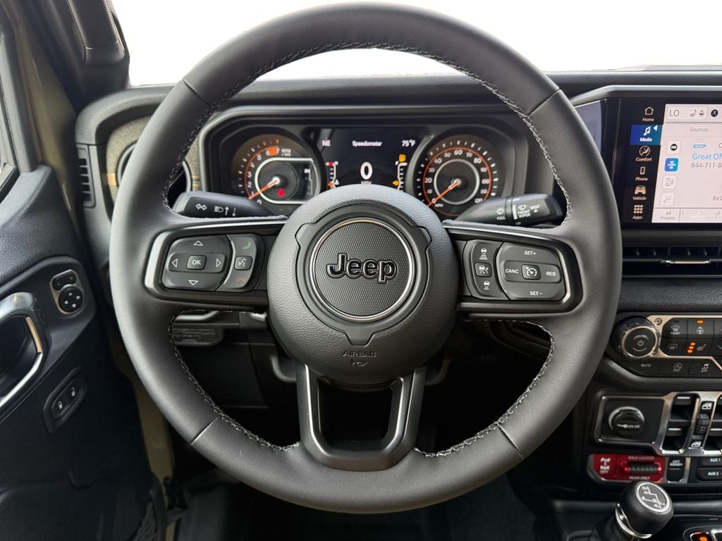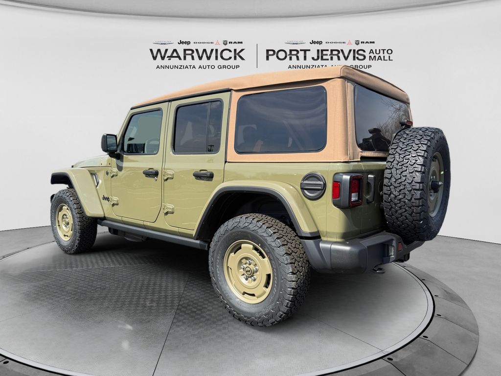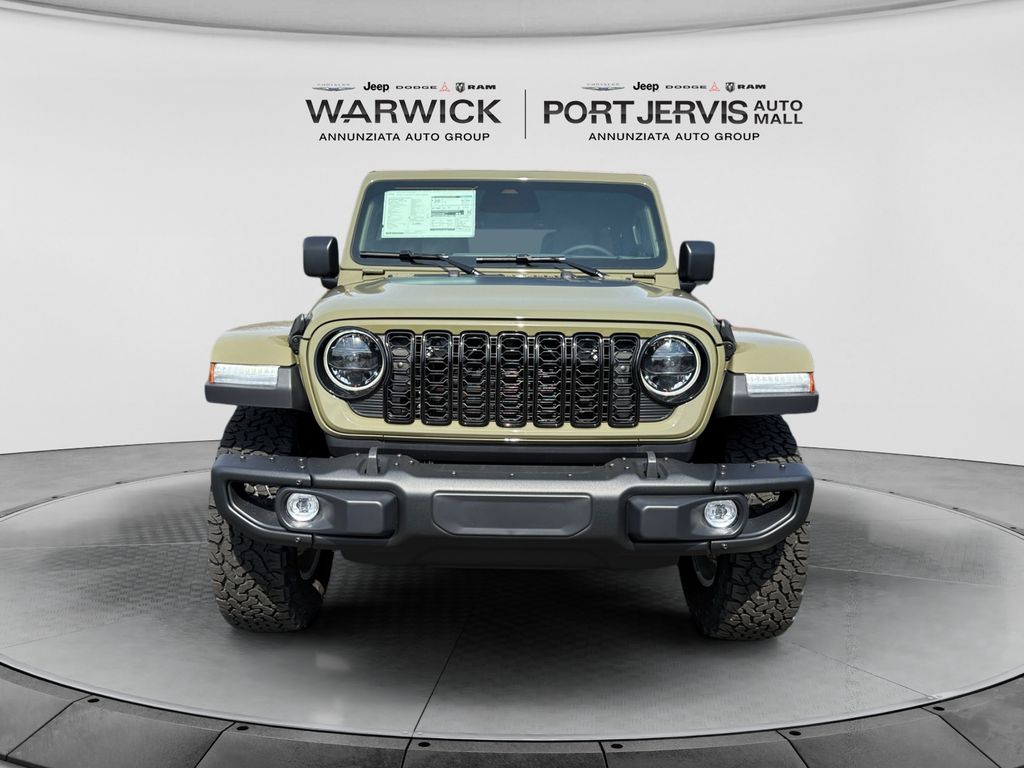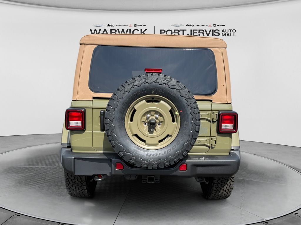 Convenience Group (2-Door Passive Entry, Front Door Locks, Air Conditioning with Auto Temp Control, Air Filtering, Cluster 7.0" TFT Color Display, Emergency/Assistance Call, Heated Front Seats, Heated Steering Wheel, and Universal Garage Door Opener), Quick Order Package 24H Willys 41 (4WD Willys '41 Swing Gate Decal, 7 and 4 Pin Wiring Harness, 97 MPH Vehicle Max Speed Calibration, Adaptive Cruise Control with Stop, Advanced Brake Assist, Automatic Headlamps, Auxiliary Switches, Body Color Grille with Gloss Black Rings, Body Color Rubicon Highline Flare, Class II Receiver Hitch, Cloth Low-Back Bucket Seats, Conventional Differential Front Axle, Corning Gorilla Glass, Dana M210 Wide HD Tube Front Axle, Dana M220 Wide Rear Axle, Daytime Running Lamps LED Accents, Deep Tint Sunscreen Windows, E-Locker Rear Axle, Front LED Fog Lamps, Full Speed Forward Collision Warning Plus, Increased Travel Export Tuned Suspension, LED Premium Reflector Headlamps, MOPAR All-Weather Floor Mats, Off-Road Plus Mode, Power Heated Mirrors, Premium Tan Sunrider Soft Top, Premium Wrapped Steering Wheel, Security Alarm, Steel Front Bumper, Steel Rear Bumper, Sun Visors with Illuminated Vanity Mirrors, Wheels: 17" x 7.5" Fully Painted, Willys '41 Retro Edition Buzz Model, Willys '41 Retro Edition Hood Decal, Willys '41 Retro Edition Tailgate Plaque, Willys '41 Retro Edition Wrangler Decal, Willys '41 Retro Shift Bezel Insert, and Willys '41 US Edition U.S. Hood Decal), Steel Power Dome Hood Package (Power Dome Dual Vented Hood), 12.3" Touchscreen Display, 4-Wheel Disc Brakes, 4G LTE Wi-Fi Hot Spot, 8 Speakers, ABS brakes, Air Conditioning, AM/FM radio: SiriusXM with 360L, Apple CarPlay, Apple CarPlay/Android Auto, Aux Battery, Brake assist, Compass, Connectivity - US/Canada, Delay-off headlights, Driver door bin, Driver vanity mirror, Dual front impact airbags, Dual front side impact airbags, Electronic Stability Control, For More Info, Call 800-643-2112, Front anti-roll bar, Front Bucket Seats, Front Center Armrest w/Storage, Front fog lights, Front reading lights, Google Android Auto, Illuminated entry, Integrated Center Stack Radio, Integrated roll-over protection, Low tire pressure warning, Non-Lock Fuel Cap Without Discriminator, Normal Duty Suspension, Occupant sensing airbag, Outside temperature display, Overhead airbag, Panic alarm, ParkView Rear Back-Up Camera, Passenger door bin, Passenger vanity mirror, Power steering, Power windows, Radio data system, Radio: Uconnect 5 with 12.3" Display, Rear anti-roll bar, Rear reading lights, Remote keyless entry, SiriusXM Radio Service, SiriusXM with 360L, Speed control, Split folding rear seat, Steering wheel mounted audio controls, Stop-Start Dual Battery System, Tachometer, Telescoping steering wheel, Tilt steering wheel, Traction control, Trip computer, Variably intermittent wipers, and Wheels: 17" x 7.5" Black Steel Styled.