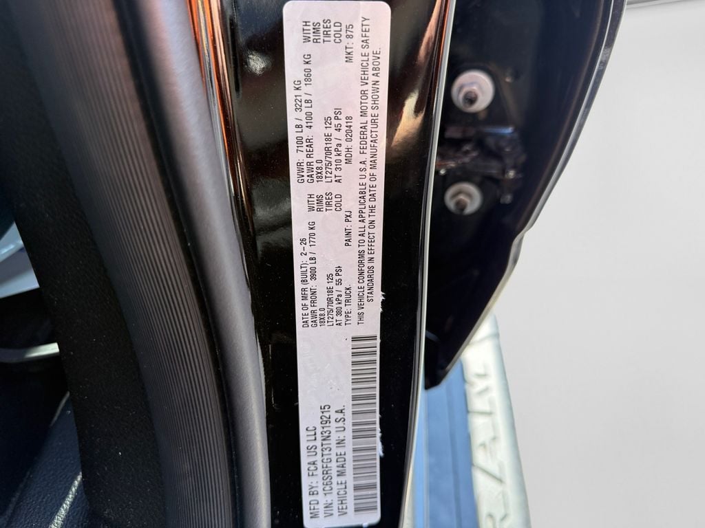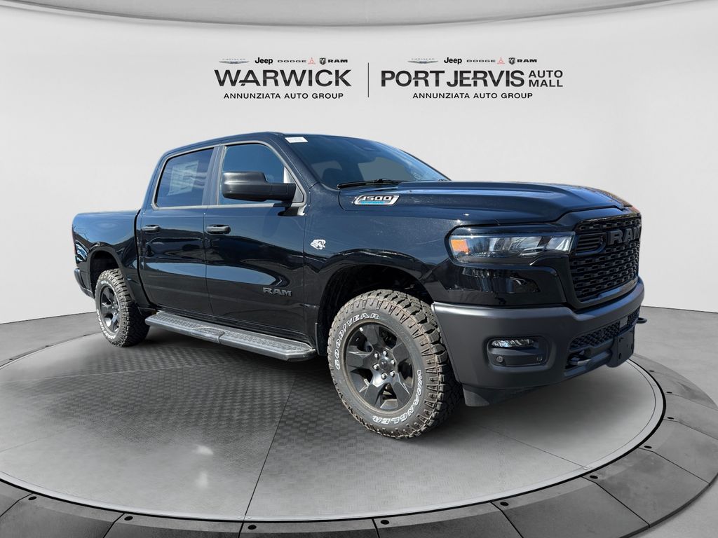 Bed Utility Group (400W Inverter, Exterior 115V AC Outlet, MOPAR 4 Adjustable Cargo Tie-Down Hooks, MOPAR Deployable Bed Step, MOPAR Spray in Bedliner, and Pick-Up Box Lighting), Quick Order Package 27B Warlock (115V Auxiliary Power Outlet, Cluster 7.0" TFT Color Display, E-Locker Rear Axle, Front LED Fog Lamps, Front Performance Tuned Shock Absorbers, MOPAR Front and Rear Rubber Floor Mats, Raised Ride Height, Rear Performance Tuned Shock Absorbers, Selec-Speed Control, Tow Hooks, Warlock Decal, and Wheels: 18" x 8.0" Black Painted Aluminum), Tradesman Level 1 Equipment Group (2nd Row in Floor Storage Bins, Cloth Bench Seat, Front and Rear Floor Mats, Rear Power Sliding Window, SiriusXM Radio Service, and SiriusXM Satellite Radio), 4 Way Front Headrests, 4-Wheel Disc Brakes, 48V Belt Starter Generator, 4G LTE Wi-Fi Hot Spot, 6 Speakers, ABS brakes, Air Conditioning, AM/FM radio, Apple CarPlay, Apple CarPlay/Android Auto, Auto High-beam Headlights, Black Exterior Mirrors, Brake assist, Compass, Connectivity - US/Canada, Delay-off headlights, Driver door bin, Dual front impact airbags, Dual front side impact airbags, Electronic Stability Control, Exterior Mirrors with Heating Element, For Details Visit DriveUconnect.com, Front anti-roll bar, Front Center Armrest, Front License Plate Bracket, Front reading lights, Front wheel independent suspension, Fully automatic headlights, Global Telematics Box Module, Google Android Auto, GPS Antenna Input, Heated door mirrors, Heavy Duty Vinyl 40/20/40 Split Bench Seat, Illuminated entry, Integrated Center Stack Radio, Integrated Voice Command with Bluetooth, Low tire pressure warning, Manual Adjust 4-Way Driver Seat, Manual Adjust 4-Way Front Passenger Seat, Manual Folding Exterior Mirrors, Mopar Black Tubular Side Steps, MyFlexCare Service Plan, Occupant sensing airbag, Outside temperature display, Overhead airbag, Overhead console, Panic alarm, ParkView Rear Back-Up Camera, Passenger door bin, Passenger vanity mirror, Power door mirrors, Power steering, Power windows, Radio data system, Radio: Uconnect 5 W with 8.4" Display, Rear anti-roll bar, Rear Folding Seat, Rear step bumper, Remote keyless entry, Speed control, Supplier Part Tracking (J-1), Tachometer, Telescoping steering wheel, Tilt steering wheel, Traction control, Trailer Brake Control, USB Host Flip, Variably intermittent wipers, Voltmeter, and Wheels: 18" x 7.5" Steel PainteD.
