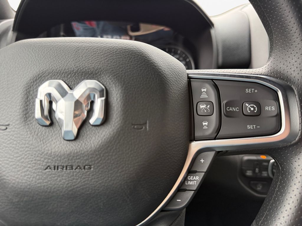 Bed Utility Group (400W Inverter, Exterior 115V AC Outlet, MOPAR 4 Adjustable Cargo Tie-Down Hooks, MOPAR Deployable Bed Step, MOPAR Spray in Bedliner, and Pick-Up Box Lighting), Black Express Edition (2nd Row in Floor Storage Bins, 3 Rear Seat Head Restraints, 4 Way Front Headrests, Anti-Spin Differential Rear Axle, Black Chrome Front Lower Fascia Trim, Black Interior Accents, Body Color Front Bumper, Body Color Rear Bumper with Step Pads, Bridgestone Brand Tires, Bucket Seats, Center Console Parts Module, Cloth Bucket Seats, Cluster 7.0" TFT Color Display, For More Info, Call 800-643-2112, Front and Rear Floor Mats, Front LED Fog Lamps, Full Length Floor Console, Grille Black Surround Black Mesh, Manual Adjust 4-Way Driver Seat, Manual Adjust 4-Way Front Passenger Seat, Mopar Black Tubular Side Steps, Rear Folding Seat, Rear Power Sliding Window, SiriusXM Radio Service, SiriusXM Satellite Radio, Sport Performance Hood, and Wheels: 20" x 9.0" Aluminum Painted Clad), Quick Order Package 21D Express (Front Center Seat Cushion Storage, Grille Surround 1 Body Color Texture 1 Black, and Wheels: 20" x 9.0" Aluminum Polished Painted), Tradesman Level 1 Equipment Group (Cloth Bench Seat), 4-Wheel Disc Brakes, 48V Belt Starter Generator, 4G LTE Wi-Fi Hot Spot, 6 Speakers, ABS brakes, Air Conditioning, AM/FM radio, Apple CarPlay, Apple CarPlay/Android Auto, Auto High-beam Headlights, Black Exterior Mirrors, Brake assist, Compass, Connectivity - US/Canada, Delay-off headlights, Driver door bin, Dual front impact airbags, Dual front side impact airbags, Electronic Stability Control, Exterior Mirrors with Heating Element, For Details Visit DriveUconnect.com, Front anti-roll bar, Front Center Armrest, Front License Plate Bracket, Front reading lights, Front wheel independent suspension, Fully automatic headlights, Global Telematics Box Module, Google Android Auto, GPS Antenna Input, Heated door mirrors, Heavy Duty Vinyl 40/20/40 Split Bench Seat, Illuminated entry, Integrated Center Stack Radio, Integrated Voice Command with Bluetooth, Low tire pressure warning, Manual Folding Exterior Mirrors, MyFlexCare Service Plan, Occupant sensing airbag, Outside temperature display, Overhead airbag, Overhead console, Panic alarm, ParkView Rear Back-Up Camera, Passenger door bin, Passenger vanity mirror, Power door mirrors, Power steering, Power windows, Radio data system, Radio: Uconnect 5 W with 8.4" Display, Rear anti-roll bar, Rear step bumper, Remote keyless entry, Speed control, Supplier Part Tracking (J-1), Tachometer, Telescoping steering wheel, Tilt steering wheel, Traction control, USB Host Flip, Variably intermittent wipers, Voltmeter, and Wheels: 18" x 7.5" Steel PainteD.