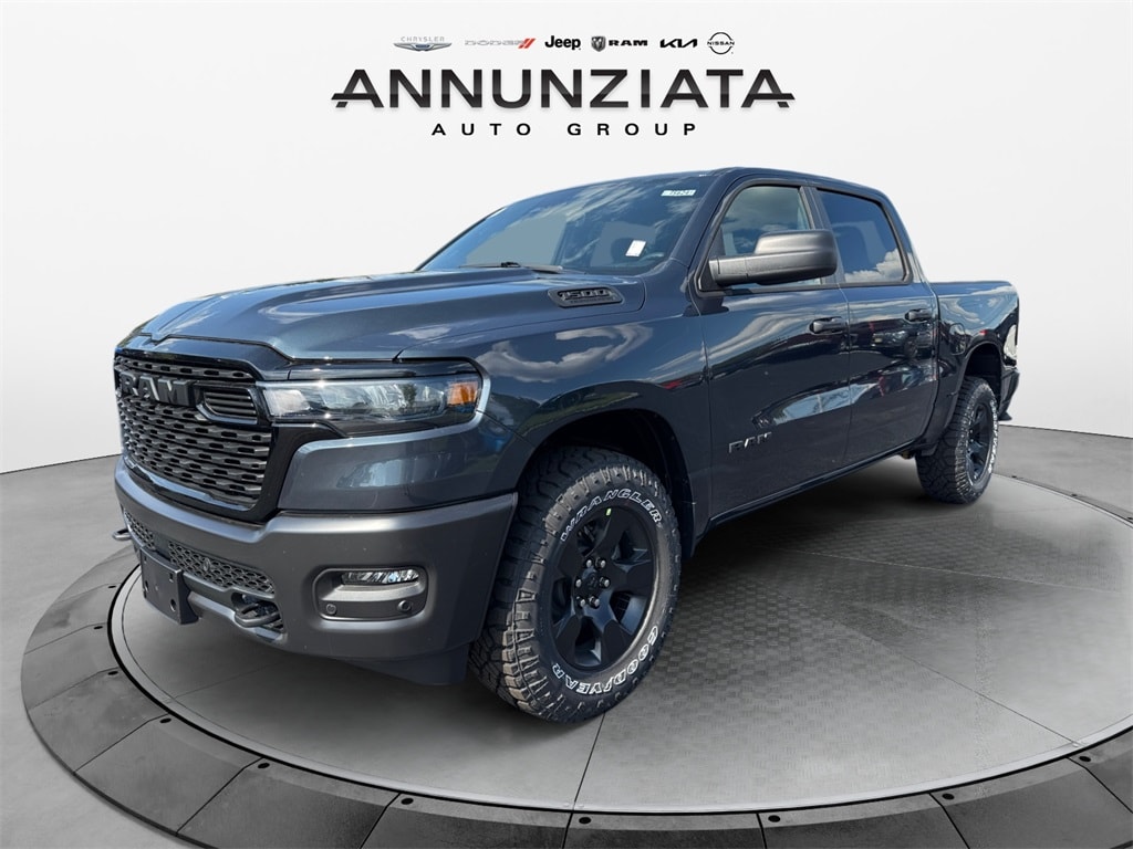 Bed Utility Group (400W Inverter, Exterior 115V AC Outlet, MOPAR 4 Adjustable Cargo Tie-Down Hooks, MOPAR Deployable Bed Step, MOPAR Spray In Bedliner, and Pick-Up Box Lighting), Quick Order Package 21B Warlock (115V Auxiliary Power Outlet, Cluster 7.0" TFT Color Display, E-Locker Rear Axle, Front LED Fog Lamps, Front Performance Tuned Shock Absorbers, MOPAR Front & Rear Rubber Floor Mats, Raised Ride Height, Rear Performance Tuned Shock Absorbers, Selec-Speed Control, Tow Hooks, Warlock Decal, and Wheels: 18" x 8.0" Black Painted Aluminum), Tradesman Level 1 Equipment Group (2nd Row In Floor Storage Bins, Cloth Bench Seat, Front & Rear Floor Mats, Rear Power Sliding Window, SiriusXM Radio Service, and SiriusXM Satellite Radio), 4 Way Front Headrests, 4-Wheel Disc Brakes, 48V Belt Starter Generator, 4G LTE Wi-Fi Hot Spot, 6 Speakers, ABS brakes, Air Conditioning, AM/FM radio, Apple CarPlay, Apple CarPlay/Android Auto, Auto High-beam Headlights, Black Exterior Mirrors, Brake assist, Compass, Connectivity - US/Canada, Delay-off headlights, Driver door bin, Dual front impact airbags, Dual front side impact airbags, Electronic Stability Control, Exterior Mirrors w/Heating Element, For Details Visit DriveUconnect.com, Front anti-roll bar, Front Center Armrest, Front License Plate Bracket, Front reading lights, Front wheel independent suspension, Fully automatic headlights, Global Telematics Box Module (TBM), Google Android Auto, GPS Antenna Input, Heated door mirrors, Heavy Duty Vinyl 40/20/40 Split Bench Seat, Illuminated entry, Integrated Center Stack Radio, Integrated Voice Command w/Bluetooth, Low tire pressure warning, Manual Adjust 4-Way Driver Seat, Manual Adjust 4-Way Front Passenger Seat, Manual Folding Exterior Mirrors, Manufacturer's Statement of Origin, Occupant sensing airbag, Outside temperature display, Overhead airbag, Overhead console, Panic alarm, ParkView Rear Back-Up Camera, Passenger door bin, Passenger vanity mirror, Power door mirrors, Power steering, Power windows, Radio data system, Radio: Uconnect 5 W w/8.4" Display, Rear anti-roll bar, Rear Folding Seat, Rear step bumper, Remote keyless entry, Speed control, Supplier Part Tracking (J-1), Tachometer, Telescoping steering wheel, Tilt steering wheel, Traction control, Trailer Brake Control, USB Host Flip, Variably intermittent wipers, Voltmeter, and Wheels: 18" x 7.5" Steel PainteD.