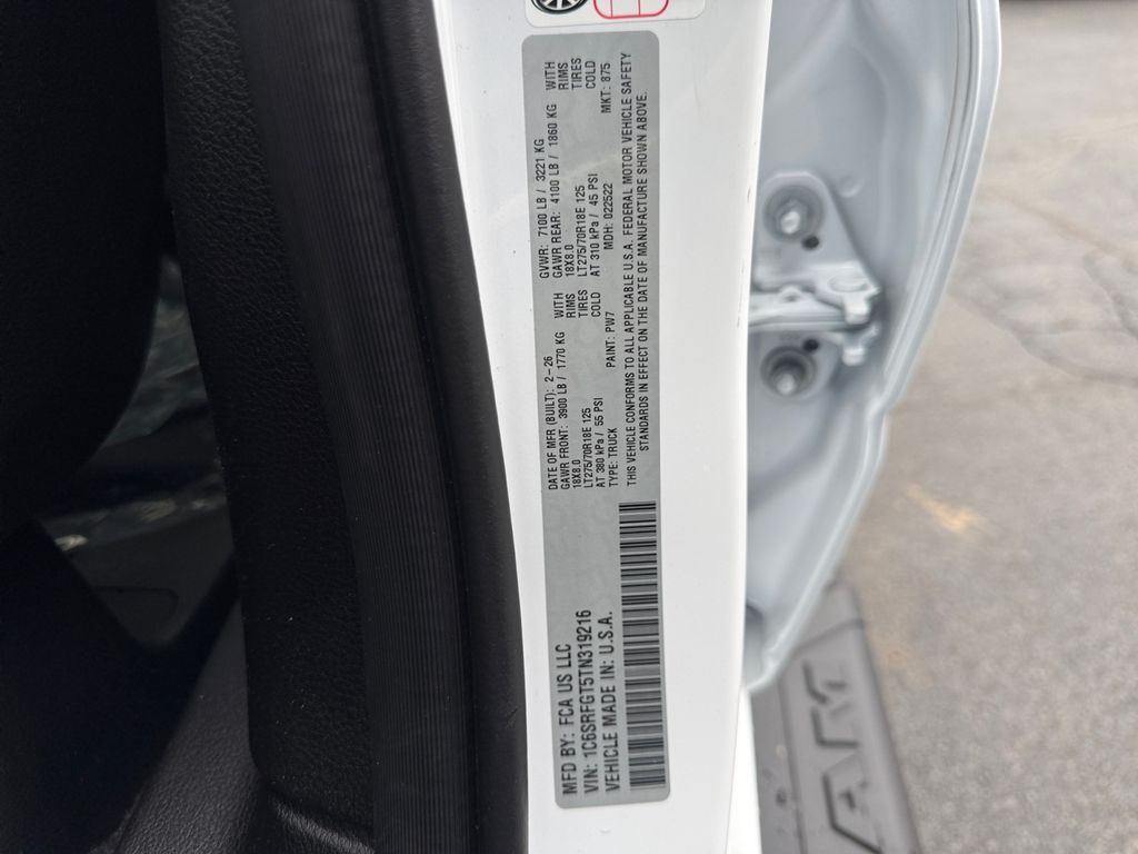 Bed Utility Group (400W Inverter, Exterior 115V AC Outlet, MOPAR 4 Adjustable Cargo Tie-Down Hooks, MOPAR Deployable Bed Step, MOPAR Spray in Bedliner, and Pick-Up Box Lighting), Quick Order Package 27B Warlock (115V Auxiliary Power Outlet, Cluster 7.0" TFT Color Display, E-Locker Rear Axle, Front LED Fog Lamps, Front Performance Tuned Shock Absorbers, MOPAR Front and Rear Rubber Floor Mats, Raised Ride Height, Rear Performance Tuned Shock Absorbers, Selec-Speed Control, Tow Hooks, Warlock Decal, and Wheels: 18" x 8.0" Black Painted Aluminum), Tradesman Level 1 Equipment Group (2nd Row in Floor Storage Bins, Cloth Bench Seat, Front and Rear Floor Mats, Rear Power Sliding Window, SiriusXM Radio Service, and SiriusXM Satellite Radio), 4 Way Front Headrests, 4-Wheel Disc Brakes, 48V Belt Starter Generator, 4G LTE Wi-Fi Hot Spot, 6 Speakers, ABS brakes, Air Conditioning, AM/FM radio, Apple CarPlay, Apple CarPlay/Android Auto, Auto High-beam Headlights, Black Exterior Mirrors, Brake assist, Compass, Connectivity - US/Canada, Delay-off headlights, Driver door bin, Dual front impact airbags, Dual front side impact airbags, Electronic Stability Control, Exterior Mirrors with Heating Element, For Details Visit DriveUconnect.com, Front anti-roll bar, Front Center Armrest, Front License Plate Bracket, Front reading lights, Front wheel independent suspension, Fully automatic headlights, Global Telematics Box Module, Google Android Auto, GPS Antenna Input, Heated door mirrors, Heavy Duty Vinyl 40/20/40 Split Bench Seat, Illuminated entry, Integrated Center Stack Radio, Integrated Voice Command with Bluetooth, Low tire pressure warning, Manual Adjust 4-Way Driver Seat, Manual Adjust 4-Way Front Passenger Seat, Manual Folding Exterior Mirrors, Mopar Black Tubular Side Steps, MyFlexCare Service Plan, Occupant sensing airbag, Outside temperature display, Overhead airbag, Overhead console, Panic alarm, ParkView Rear Back-Up Camera, Passenger door bin, Passenger vanity mirror, Power door mirrors, Power steering, Power windows, Radio data system, Radio: Uconnect 5 W with 8.4" Display, Rear anti-roll bar, Rear Folding Seat, Rear step bumper, Remote keyless entry, Speed control, Supplier Part Tracking (J-1), Tachometer, Telescoping steering wheel, Tilt steering wheel, Traction control, Trailer Brake Control, USB Host Flip, Variably intermittent wipers, Voltmeter, and Wheels: 18" x 7.5" Steel PainteD.