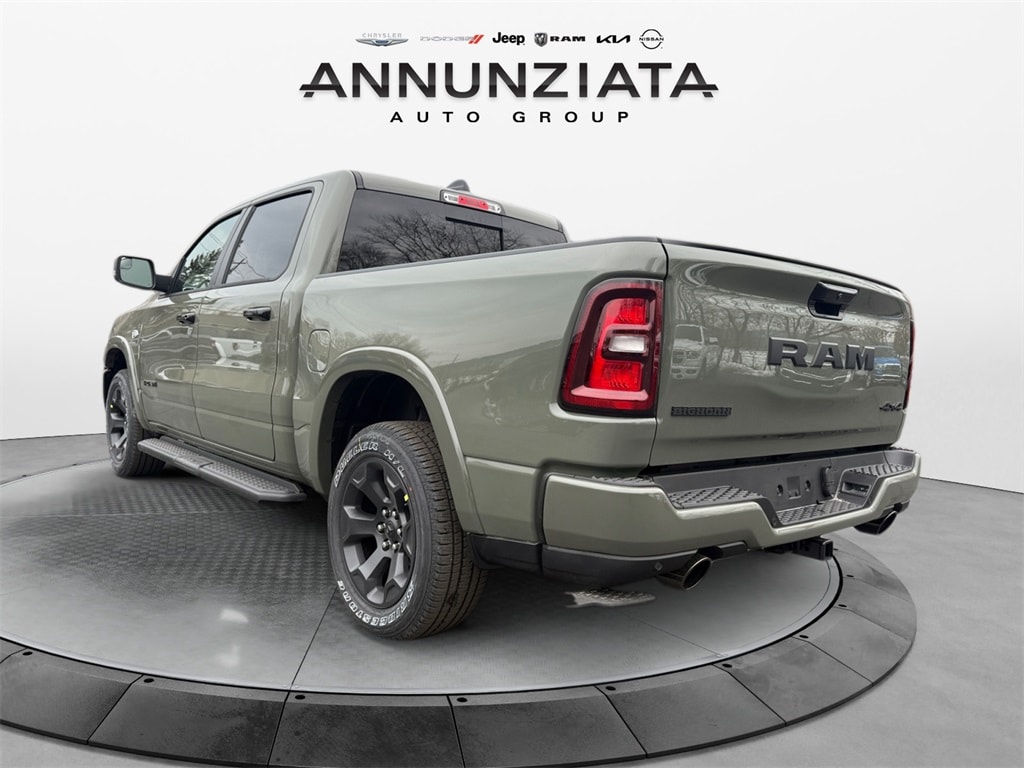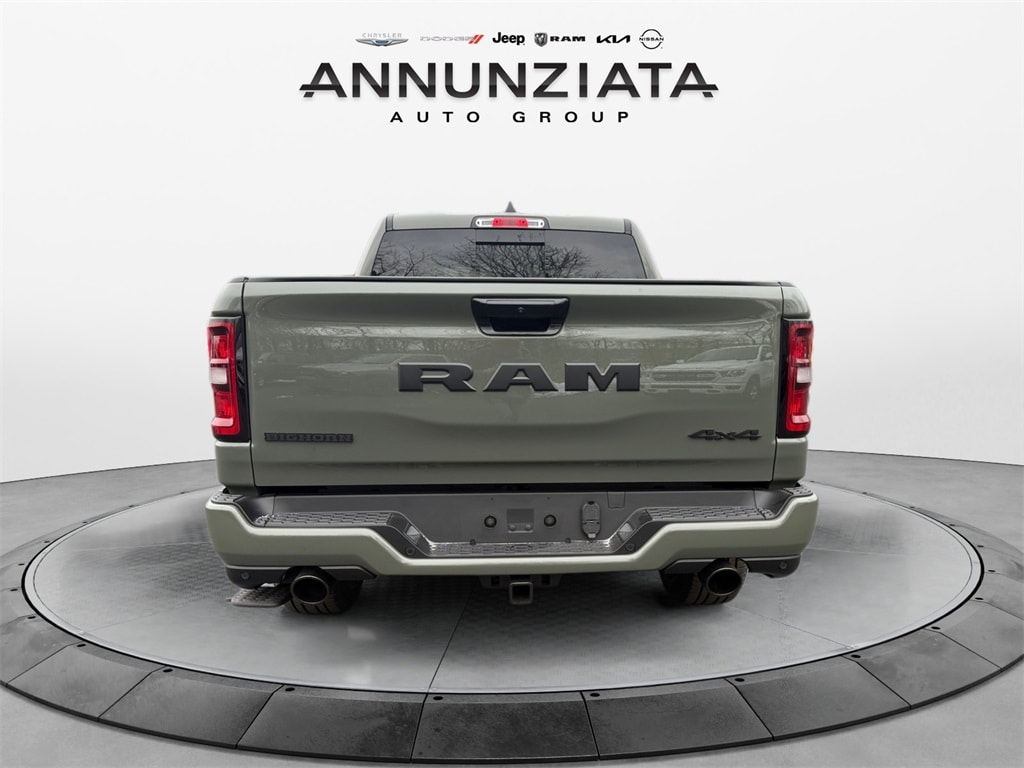 Bed Utility Group (Exterior 115V AC Outlet, MOPAR 4 Adjustable Cargo Tie-Down Hooks, MOPAR Spray in Bedliner, and Pick-Up Box Lighting), Big Horn Level 2 Equipment Group (115V Auxiliary Power Outlet, 115V Auxiliary Rear Power Outlet, 12" Touchscreen Display, 2nd Row in Floor Storage Bins, 3 Rear Seat Head Restraints, 4 Way Front Headrests, 400W Inverter, 4G LTE Wi-Fi Hot Spot, 9 Amplified Speakers with Subwoofer, Air Conditioning ATC with Dual Zone Control, Apple CarPlay, Auto Power-Folding Mirrors, Auto-Dimming Exterior Driver Mirror, Auto-Dimming Rear-View Mirror, Black Exterior Mirrors, Black Premium Power Mirrors, Body Color Fender Flares, Bucket Seats, Center Console Parts Module, Cluster 7.0" TFT Color Display, Configurable Drive Mode, Connected Travel and Traffic Services, Connectivity - US/Canada, Convex Wide-Angle Exterior Mirror Insert, Deluxe Cloth Bucket Seats, Disassociated Touchscreen Display, Exterior Mirrors Courtesy Lamps, Exterior Mirrors with Heating Element, Exterior Mirrors with Supplemental Signals, Front Seat Back Map Pockets, Full Length Floor Console, Global Telematics Box Module, Glove Box Lamp, Google Android Auto, GPS Antenna Input, GPS Navigation, HD Radio, Heated Front Seats, Heated Steering Wheel, Integrated Center Stack Radio, Integrated Voice Command with Bluetooth, Leather Wrapped Steering Wheel, LED Dome Lamp with on/Off Switch, LED Footwell Lighting, Manual Adjust 4-Way Front Passenger Seat, Media Hub with 2 Charge Only USBs, Overhead LED Lamps, Power 2-Way Driver Lumbar Adjust, Power Adjust 8-Way Driver Seat, Power Adjustable Pedals, Premium Overhead Console, Radio: Uconnect 5 Navigation with 12.0" Display, Rear 60/40 Folding Seat, Rear Center Armrest, Rear Power Sliding Window, Rear Window Defroster, Remote Tailgate Release, Security Alarm, SiriusXM Radio Service, SiriusXM with 360L, Steering Wheel Mounted Audio Controls, Sun Visors with Illuminated Vanity Mirrors, Universal Garage Door Opener, and USB Host Flip), Night Edition (Accent Color Door Handles, Accent Color Premium Power Mirrors, Accent Color Tailgate Handle, Anti-Spin Differential Rear Axle, Black Exterior Truck Badging, Black Headlamp Bezels, Black Interior Accents, Black Painted Exterior Mirrors Caps, Black Tail Lamp Bezels, Body Color Front Bumper, Body Color Rear Bumper with Step Pads, Dual Exhaust with Black Tips, Grille Black Surround Black Mesh, RAM Grille Badge - Black, and Wheels: 20" x 9.0" Aluminum Painted Clad), Quick Order Package 27Z Big Horn, 33 Gallon Fuel Tank, 4-Wheel Disc Brakes, 48V Belt Starter Generator, 6 Speakers, ABS brakes, Air Conditioning, Alloy wheels, AM/FM radio, Apple CarPlay/Android Auto, Auto High-beam Headlights, Brake assist, Bumpers: chrome, Cloth Bucket Seats, Compass, Delay-off headlights, Dome Dual LED Reading Lamp, Driver door bin, Dual front impact airbags, Dual front side impact airbags, Dual-Pane Panoramic Sunroof, Electronic Stability Control, Front anti-roll bar, Front Bucket Seats, Front Center Armrest w/Storage, Front fog lights, Front License Plate Bracket, Front reading lights, Front wheel independent suspension, Fully automatic headlights, Heated door mirrors, Illuminated entry, Low tire pressure warning, Manual Adjust 4-Way Driver Seat, Manual Folding Exterior Mirrors, Manufacturer's Statement of Origin, Mopar Black Tubular Side Steps, MOPAR Front and Rear Rubber Floor Mats, MyFlexCare Service Plan, Occupant sensing airbag, Outside temperature display, Overhead airbag, Overhead console, Panic alarm, ParkView Rear Back-Up Camera, Passenger door bin, Passenger vanity mirror, Power door mirrors, Power steering, Power windows, Radio data system, Radio: Uconnect 5 W with 8.4" Display, RAM Grille Badge - Chrome, Rear anti-roll bar, Rear step bumper, Rear Wheelhouse Liners, Remote keyless entry, Speed control, Supplier Part Tracking (J-1), T