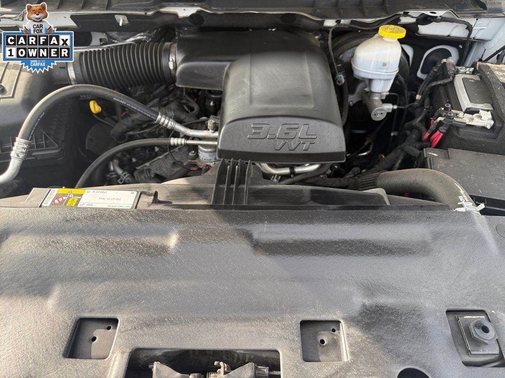 Quick Order Package 29G SLT, FCA US LLC Certified Pre-Owned Certified, 17" x 7" Aluminum Wheels, 3.21 Rear Axle Ratio, 4-Wheel Disc Brakes, 40/20/40 Split Bench Seat, 6 Speakers, ABS brakes, Active Grille Shutters, Air Conditioning, Alloy wheels, AM/FM radio: SiriusXM, Audio Input Jack for Mobile Devices, Black Exterior Mirrors, Brake assist, Bumpers: chrome, Center Hub, Charge Only Remote USB Port, Cloth 40/20/40 Bench Seat, Compass, Delay-off headlights, Driver door bin, Dual front impact airbags, Dual front side impact airbags, Electronic Shift, Electronic Stability Control, Exterior Mirrors w/Heating Element, Front anti-roll bar, Front Armrest w/3 Cupholders, Front Center Armrest w/Storage, Front License Plate Bracket, Front reading lights, Front wheel independent suspension, Fully automatic headlights, GPS Antenna Input, Heated door mirrors, Illuminated entry, Integrated Voice Command w/Bluetooth, Low tire pressure warning, Manufacturer's Statement of Origin, Occupant sensing airbag, Outside temperature display, Overhead airbag, Overhead console, Panic alarm, ParkView Rear Back-Up Camera, Passenger door bin, Passenger vanity mirror, Power door mirrors, Power steering, Power windows, Radio data system, Radio: Uconnect 3 w/5" Display, Rear anti-roll bar, Rear step bumper, Remote keyless entry, Remote USB Port, Speed control, Tachometer, Tilt steering wheel, Tip Start, Traction control, Trip computer, Variably intermittent wipers, and Voltmeter.